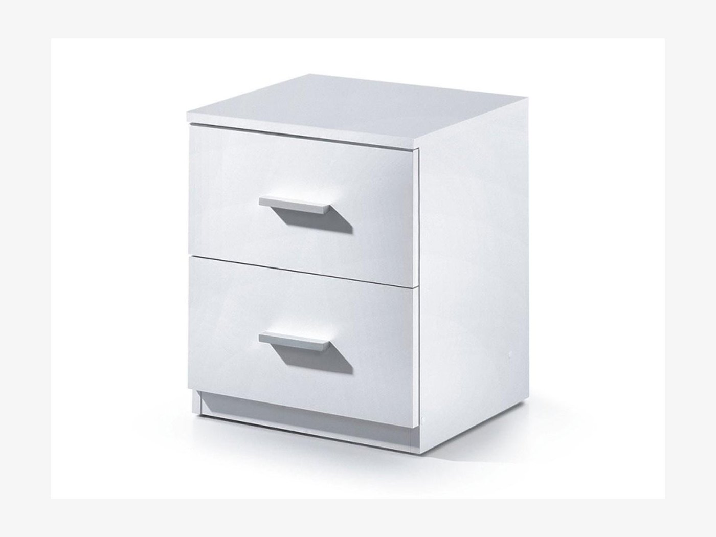 Mesita de noche pensada especialmente para espacios reducidos. Disponible en color blanco liso