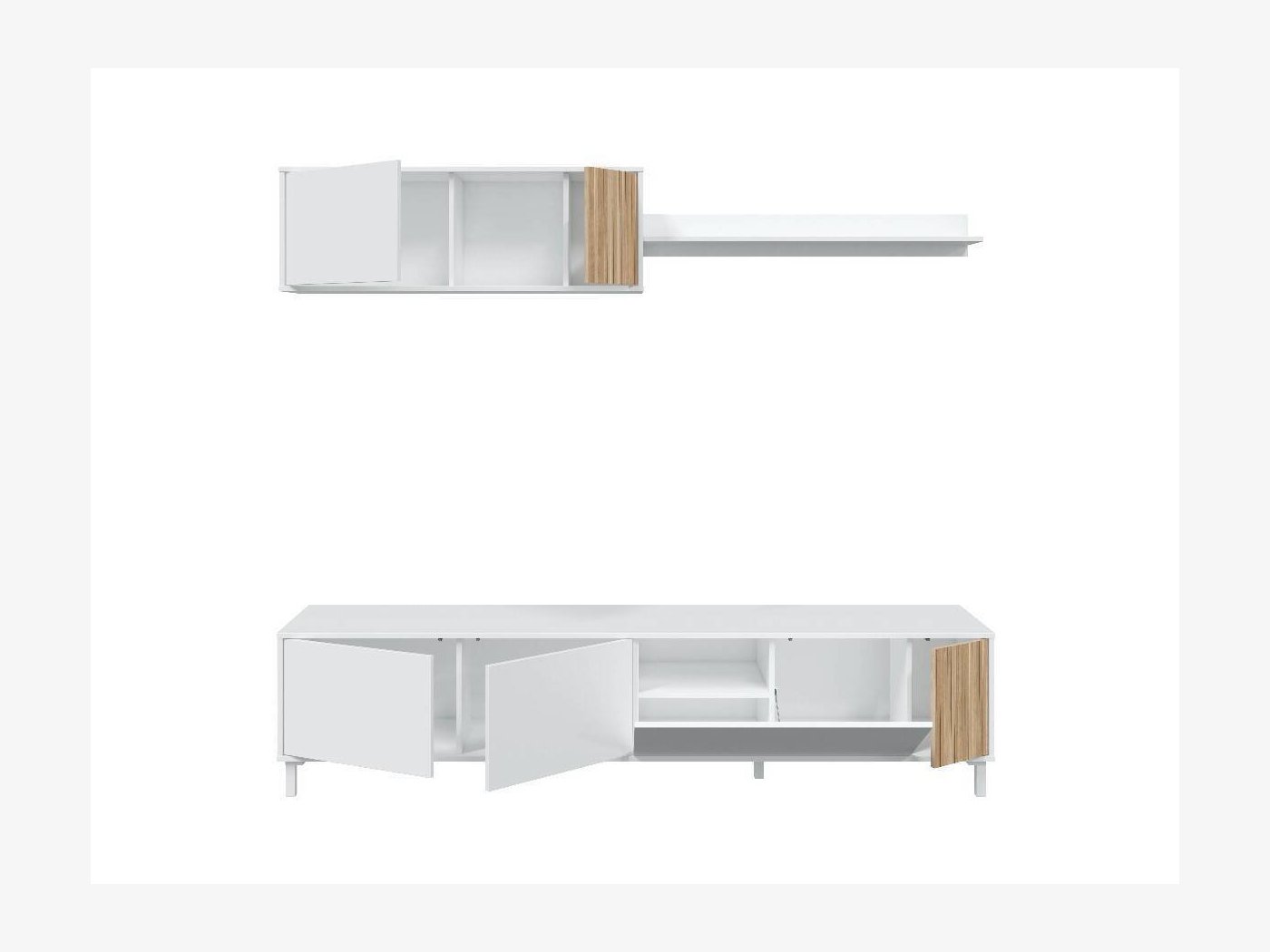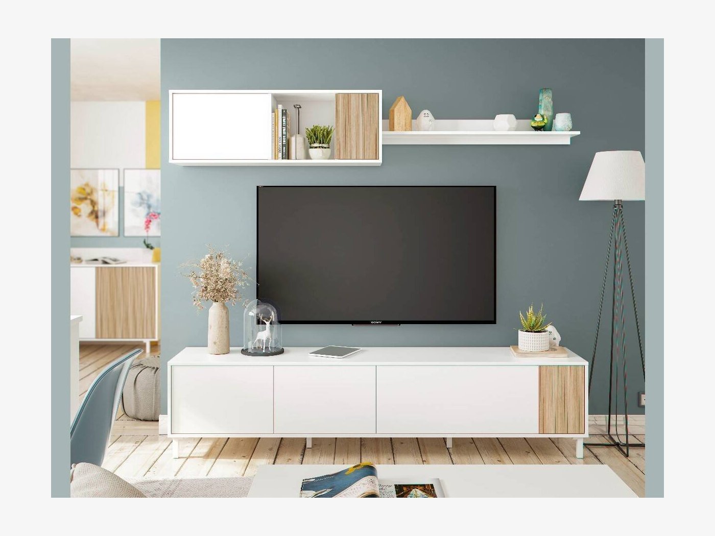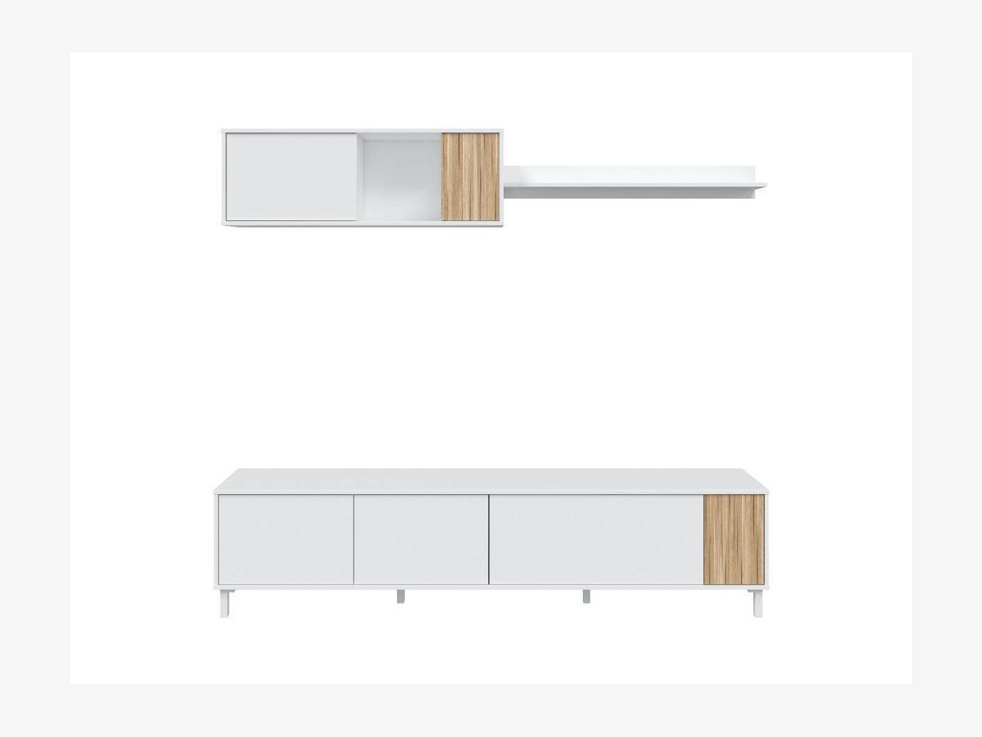 El Mueble Modular PAK es el equilibrio perfecto entre funcionalidad y minimalismo. Compuesto por un mueble bajo para TV de cuatro puertas y un módulo superior de dos puertas y un estante de colgar. Solución de almacenaje sin renunciar al minimalismo.