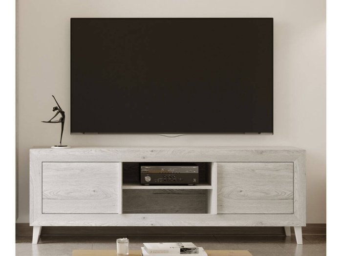 En la parte central incluye un hueco central con estante para el video o similar.