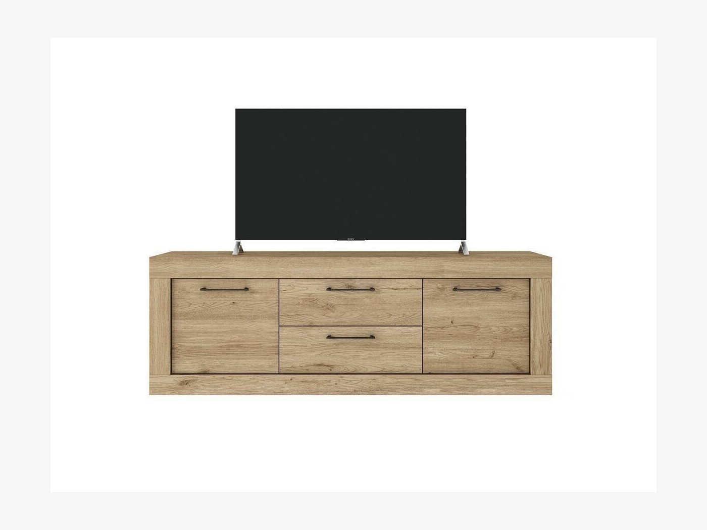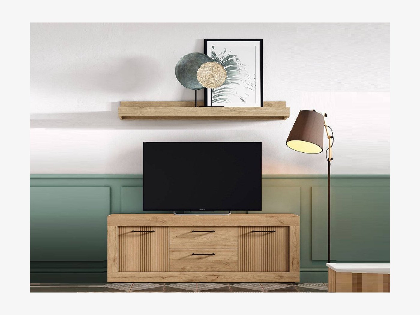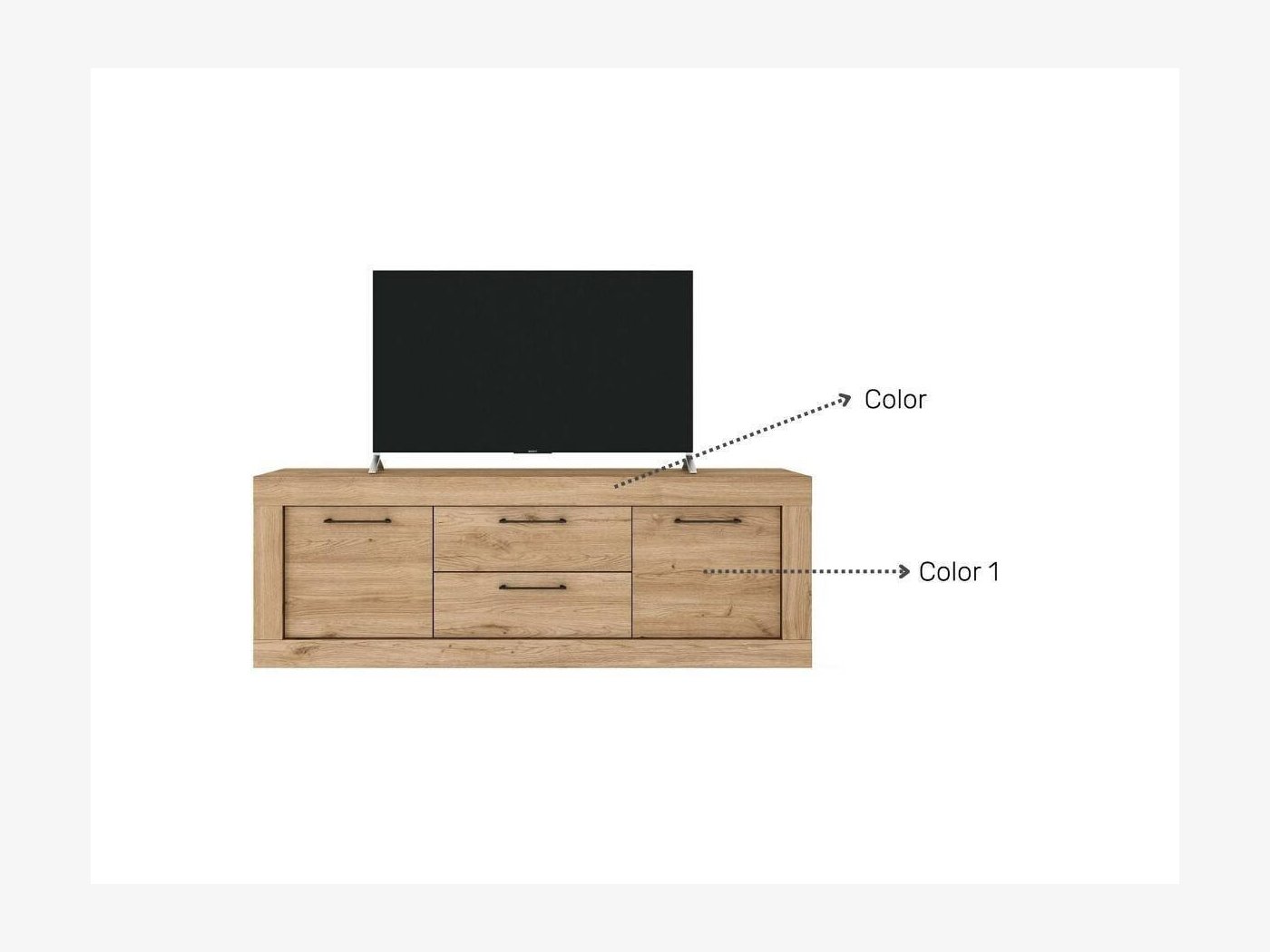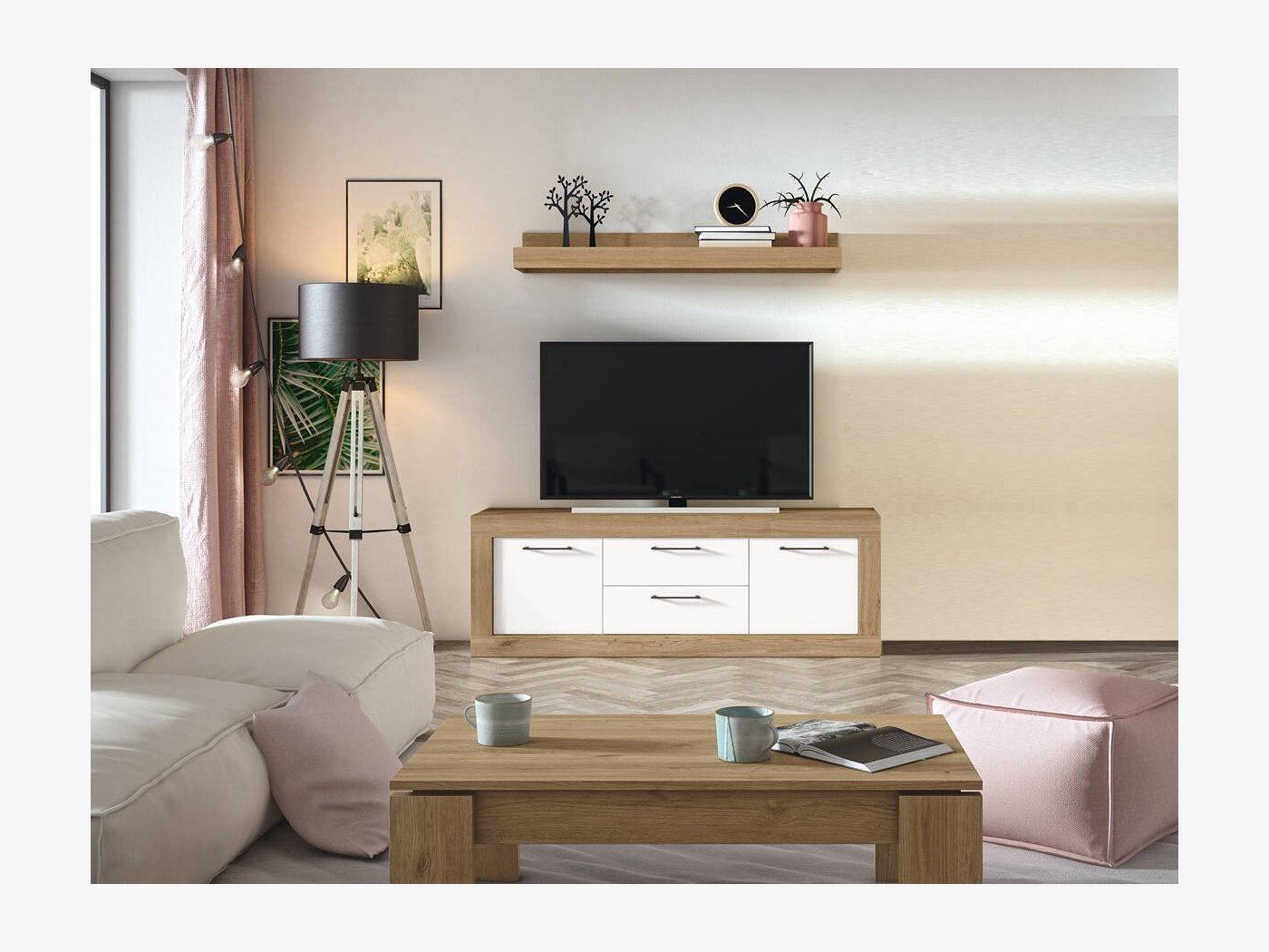Una de las principales ventajas de este mueble es su buen espacio de almacenaje. Cuenta con dos puertas batientes y dos cajones amplios, lo que te permite guardar tus objetos personales, libros, accesorios y mucho más. Ya no tendrás que preocuparte por el desorden. Mantén tu espacio organizado y ordenado gracias a los espaciosos compartimentos que ofrece el Mueble bajo TV y auxiliar Dakota