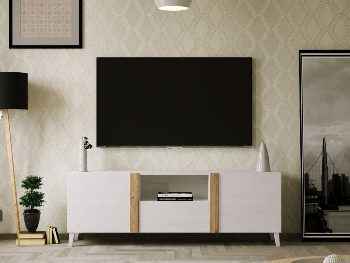 Tablero de melamina disponible en color blanco veta o roble veta. Patas blancas.