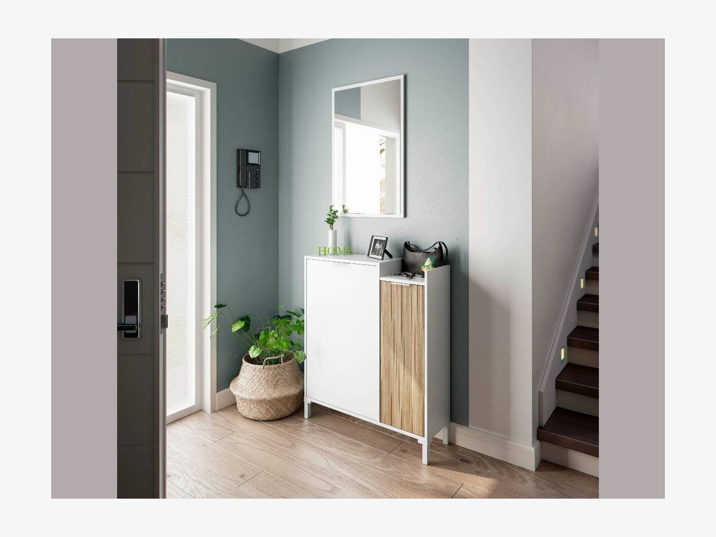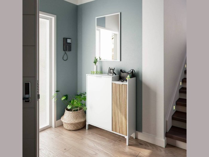 Poniendo un mueble recibidor en la entrada de tu casa ganarás confort y un espacio de almacenaje extra. Puedes guardar en los estantes interiores todo aquello que no quieras tener a la vista o incluso utilizarlo como zapatero. Además, el espejo aportará sensación de amplitud al espacio y será muy útil para retocarte antes de salir de casa