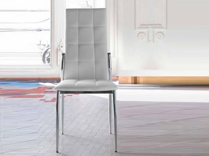 Patas cromadas con asiento y respaldo tapizados en polipiel con costuras decorativas.