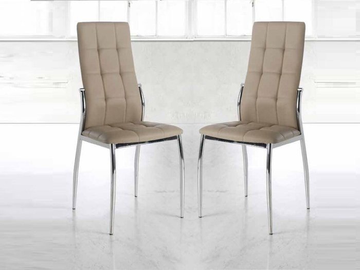 Patas cromadas con asiento y respaldo tapizados en polipiel con costuras decorativas.