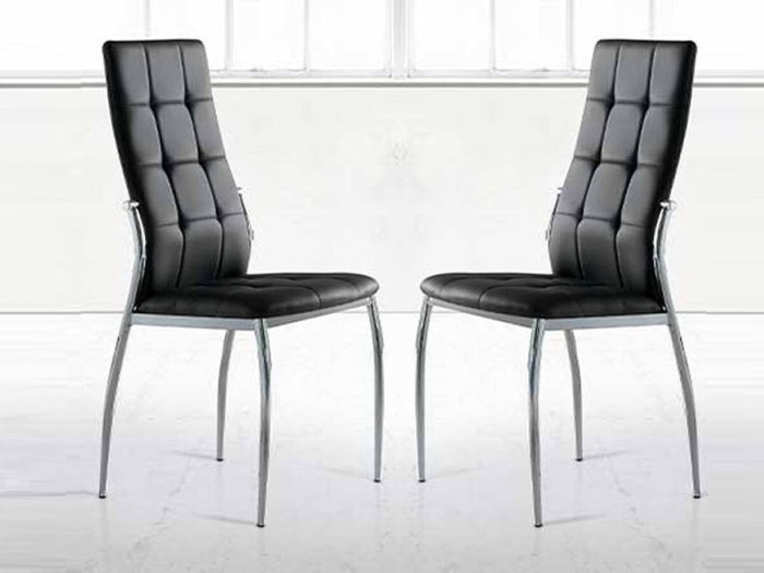 Patas cromadas con asiento y respaldo tapizados en polipiel con costuras decorativas.