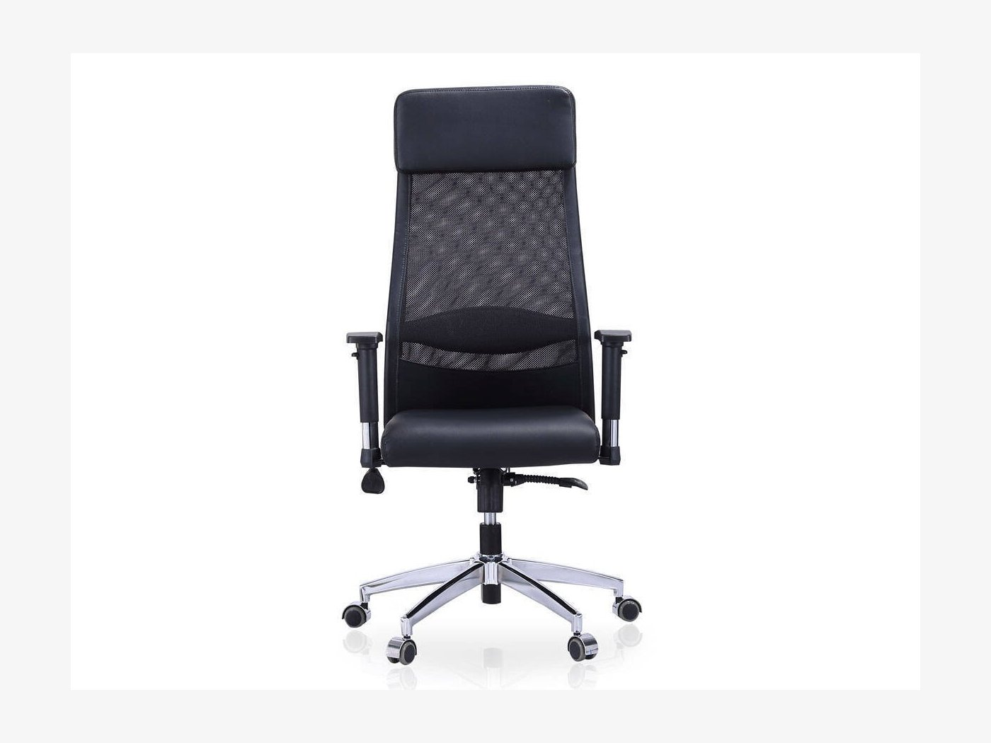 Cómodo sillón de oficina tapizado en polipiel sintética y red transpirable.