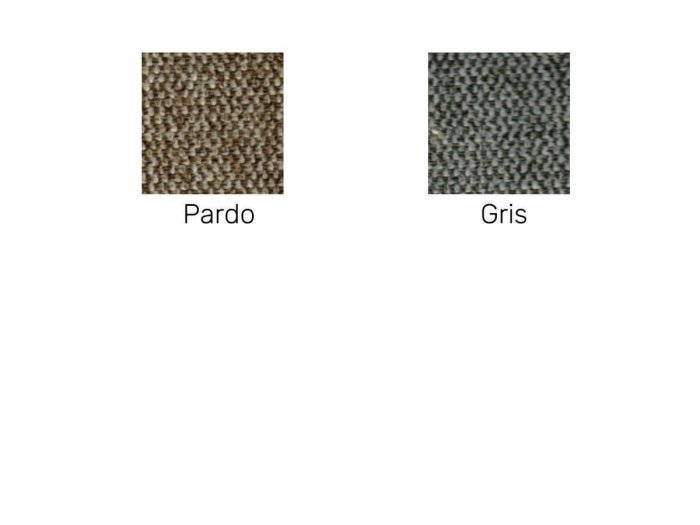 Tapizado en tela tipo chenilla de tacto suave. Disponible en color pardo y gris