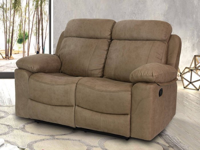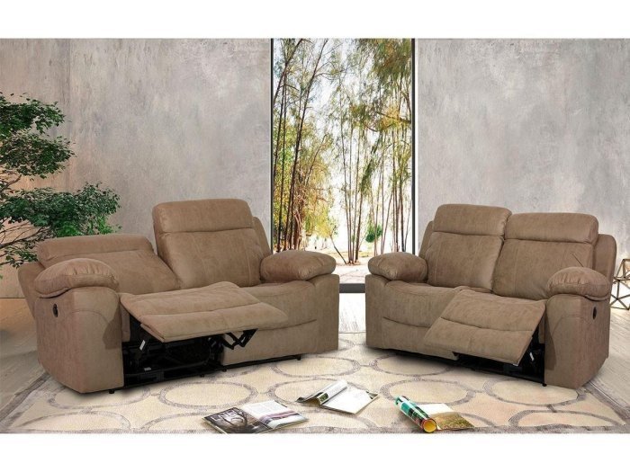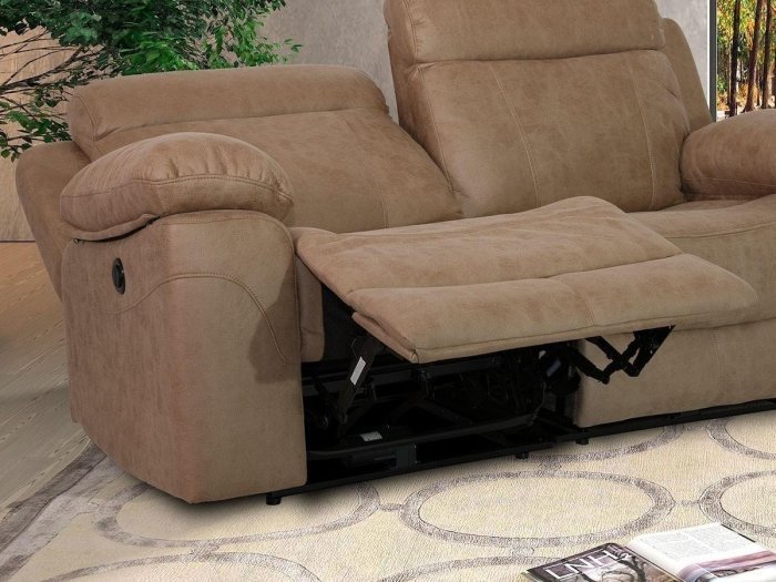 Mecanismo manual accionable con palanca. Permite levantar el reposapiés en una primera función y reclinar el respaldo en una segunda. Compatible con la colocación del sofá junto a la pared ya que la inclinación no sobrepasa la trasera del sillón.