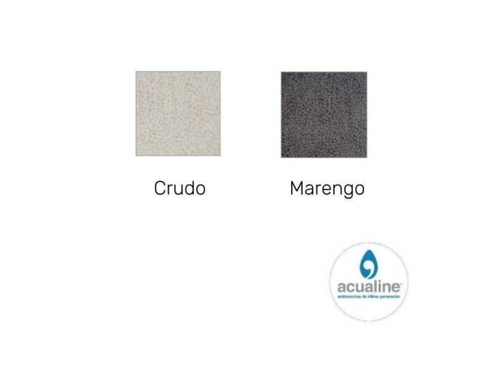 - Tapizado en tela tipo chenilla de tacto suave. Composición 100% polyester. Tratamiento Acualine antimanchas.