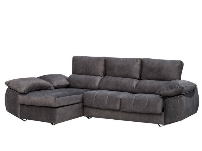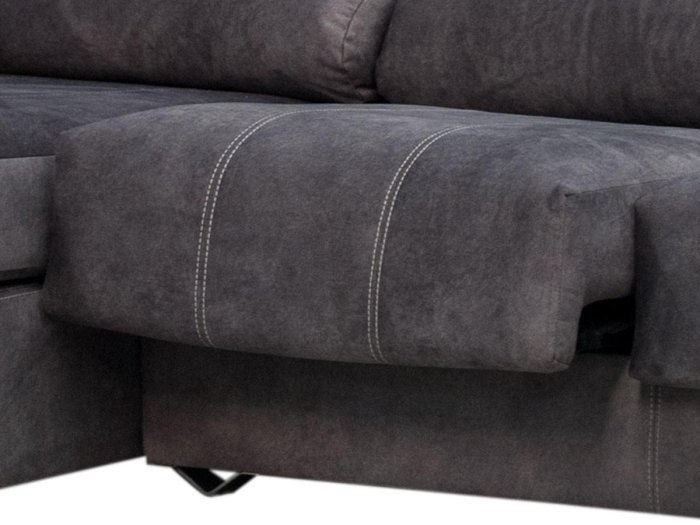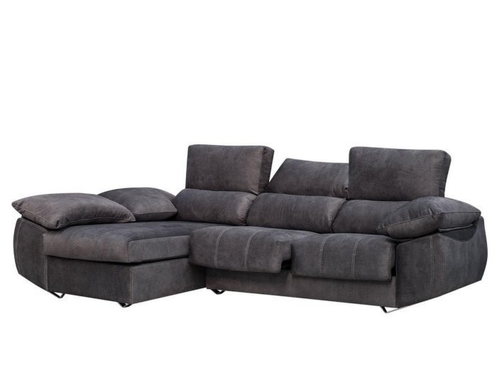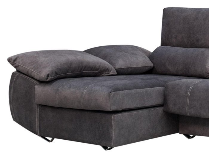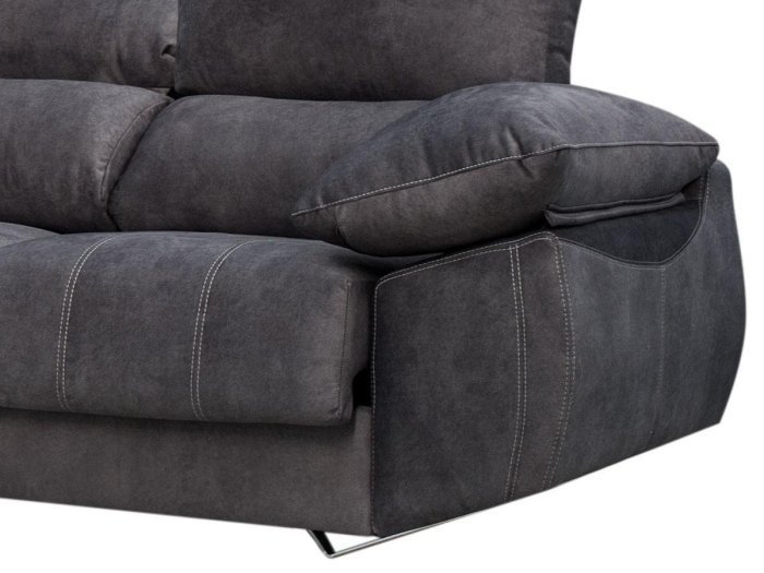 Tapizado en tela tipo microfibra grabada de tacto suave. Hilo contrastado. Composición 100% polyester. Tratamiento Acualine antimanchas. Asientos y respaldos desenfundables.