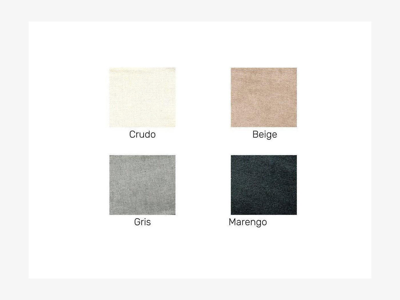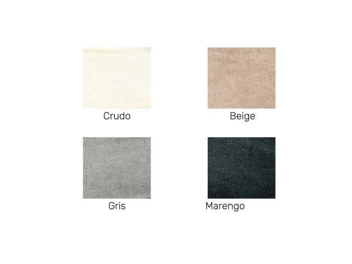 Tapizado en tela tipo chenilla de tacto suave. Tratamiento Acualine antimanchas. Asientos y respaldos desenfundables.