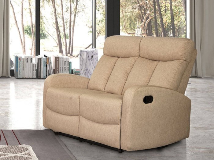 Mecanismo manual accionable con palanca. Permite levantar el reposapiés en una primera función y reclinar el respaldo en una segunda. Compatible con la colocación del sofá junto a la pared ya que la inclinación no sobrepasa la trasera del sillón.