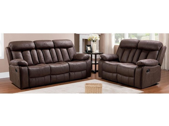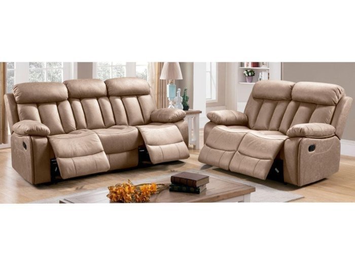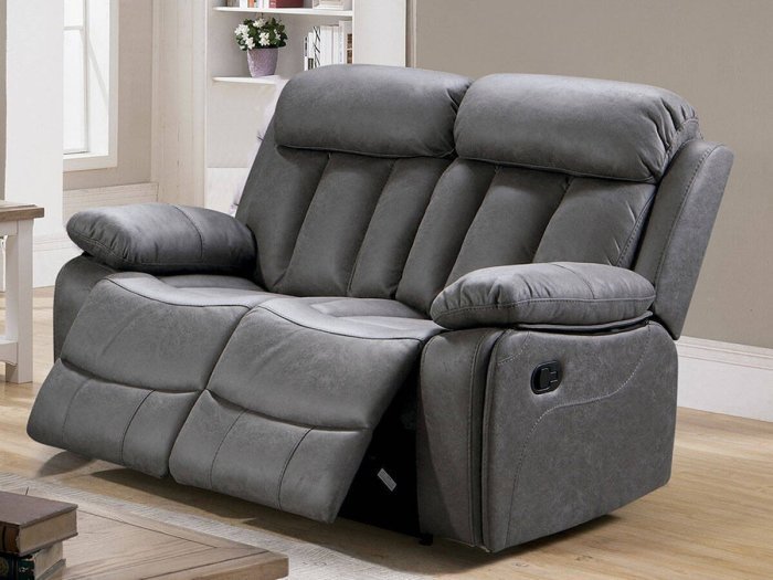 Mecanismo manual accionable con palanca. Permite levantar el reposapiés en una primera función y reclinar el respaldo en una segunda. Compatible con la colocación del sofá junto a la pared ya que la inclinación no sobrepasa la trasera del sillón.
