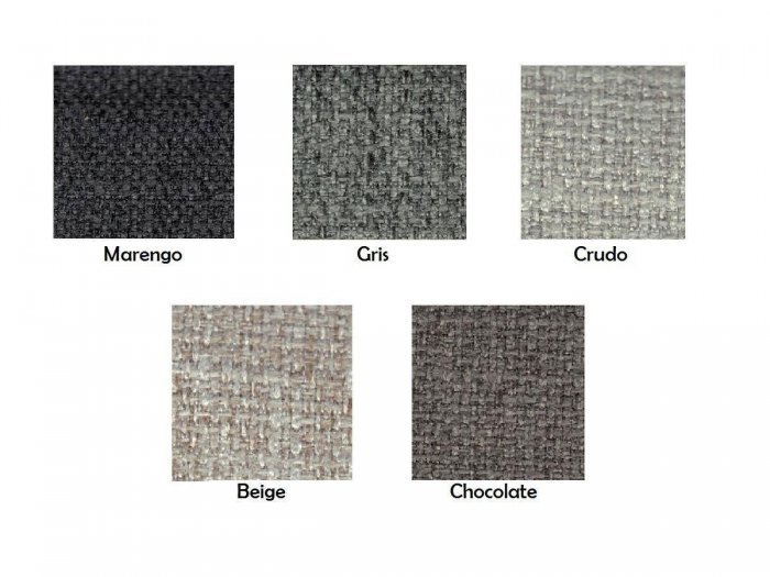 Tapizado en tela tipo chenilla de tacto suave.Composición 100% polyester. Fácil limpieza. Asientos y respaldos desenfundables.