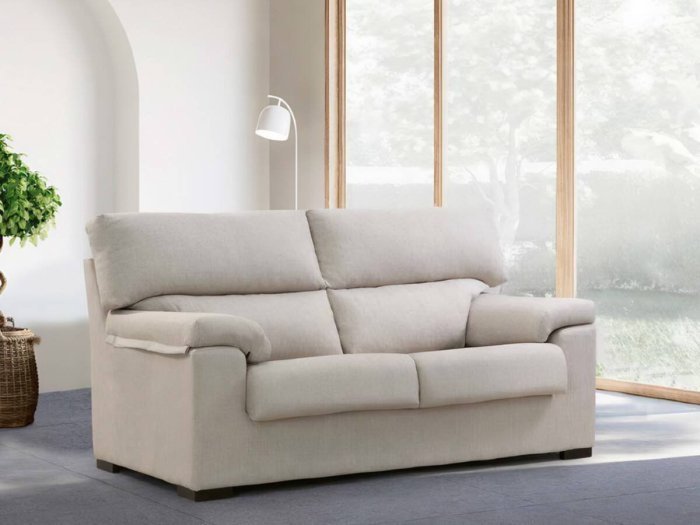 Tapizado en tela tipo microfibra grabada de tacto suave. Composición 100% Polyester. Resistente al agua. Asientos y respaldos desenfundables.