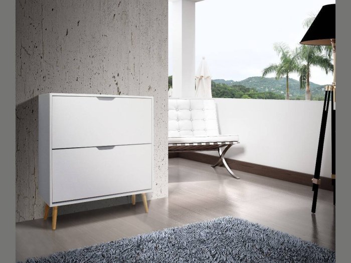 De estilo nórdica por las patas cónica en madera, tiene una capacidad para 16-24 pares de zapatos aproximadamente